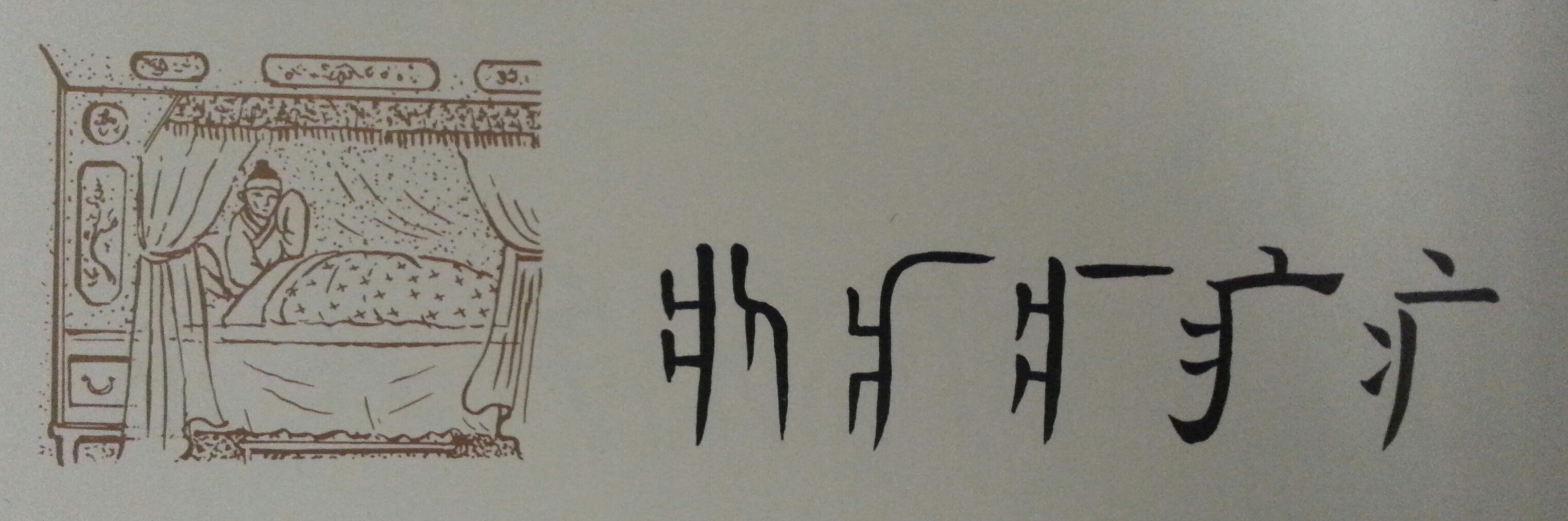 Sempre dallo stesso radicale se aggiungiamo il carattere di completo, 全 quán , si da vita a 痊 quán, che vuol dire guarigione, come se rappresentasse il totale recupero di salute dell’uomo steso sul baldacchino.