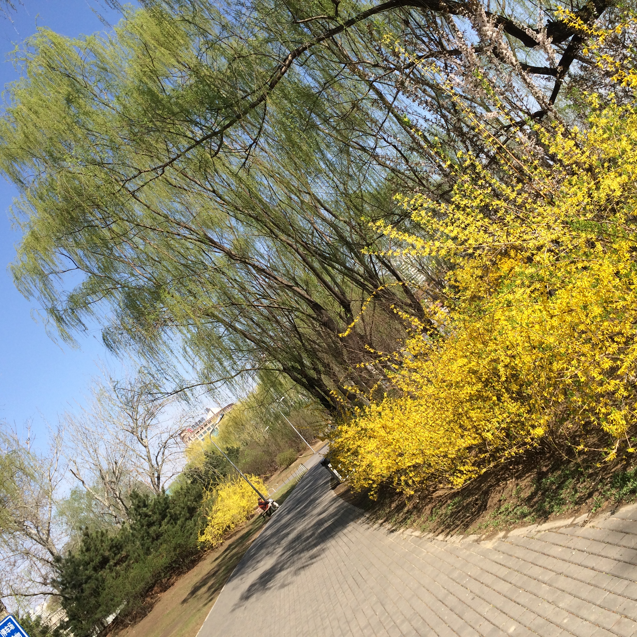Fortunatamente il governo cinese ha ben pensato di piantare alberi ovunque e se c’e’ qualcosa che non manca qui sono le vie alberate, i parchi e i giardini per rendere meno tristi giornate inquinate, quando il grigio rende invivibile e invisibile la citta’.
