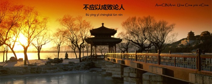 Il Proverbio del Lunedì Postato il 18 Maggio 201517 Maggio 2015 di isabellasilvestri in proverbi Il Palazzo d’Estate, Pechino. 頤和園, 北京 不应以成败论人 bù yìng yǐ chéngbài lùn rén Non si può giudicare il prossimo contando le vittorie o le sconfitte Condividi: Condividi su Facebook (Si apre in una nuova finestra) Facebook Condividi su WhatsApp (Si apre in una nuova finestra) WhatsApp Condividi su X (Si apre in una nuova finestra) X Share on Pinterest (Si apre in una nuova finestra) Pinterest Condividi su Tumblr (Si apre in una nuova finestra) Tumblr Mi piace Caricamento...