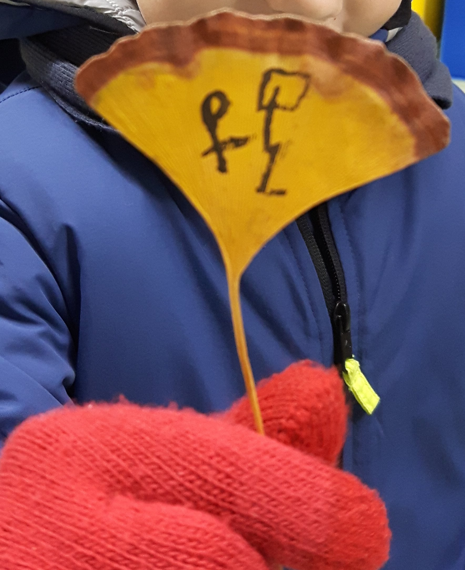 好 La mamma accanto al proprio bambino: calligrafia con china su foglia di Ginkgo Biloba