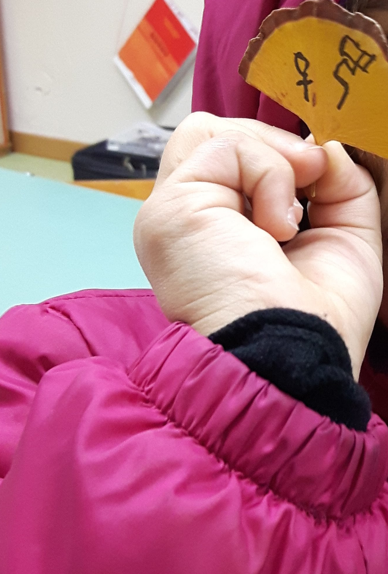 好 La mamma accanto al proprio bambino: calligrafia con china su foglia di Ginkgo Biloba